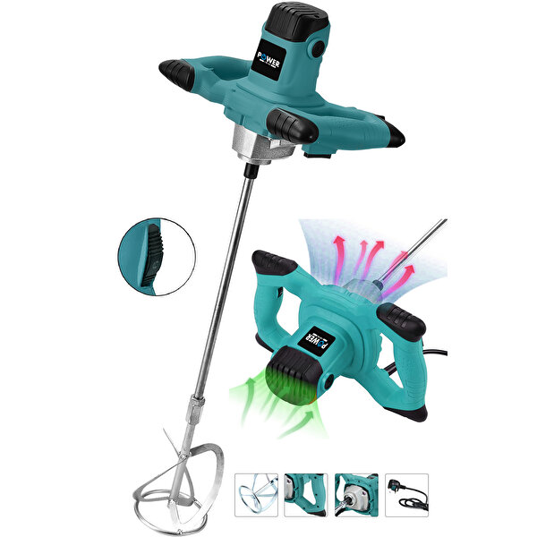 1800 W Devir Ayarlı Elektrikli Alçı Boya Ve Harç Karıştırıcı Mikser-mavi