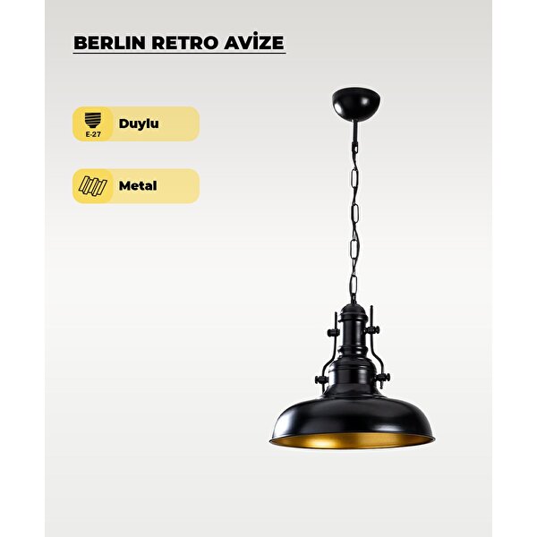 ⚫ Berlin Retro Avize Siyah / Metal - E27 Duylu Endüstriyel tarzın güçlü duruşunu modern zarafetle buluşturan Berlin Retro Avize, mat siyah metal gövdesi ve iç kısmındaki bakır tonlu yansımalarıyla her ortama sofistike bir atmosfer kazandırır. Minimal ama iddialı tasarımıyla yaşam alanlarınıza karakter katar. Tamamı metal malzemeden üretilen gövdesi dayanıklılık sunarken, E27 duylu yapısı sayesinde dilediğiniz ampul tipini (LED, flamanlı, Edison vb.) kolayca kullanabilirsiniz. Loş ve sıcak bir aydınlatma deneyimi isteyenler için mükemmel bir tercihtir. Öne Çıkan Özellikler: Renk: Mat Siyah (iç yüzey bakır tonlu) Malzeme: Dayanıklı metal gövde Duy Tipi: E27 (standart ampullerle uyumlu) Stil: Retro – Endüstriyel – Loft Kullanım Alanı: Oturma odası, mutfak, kafe, restoran, ofis, bar Kolay montaj ve uzun ömürlü kullanım Berlin Retro Avize, endüstriyel sadeliği sıcak ışıkla harmanlayarak mekânınıza modern bir ruh kazandırır. Loş ışığın altında stil ve huzur bir arada!