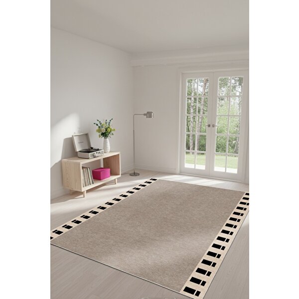 Adalizza Bej Zemin Üzerinde Grafik Kenar Hem Dekoratif Hem Pratik Kaymaz Taban Halı 60x100 cm