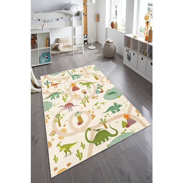 Adalizza Dinozorlarla Dolu Bir Oyun Dünyası Çocuk Halısı- Kaymaz Taban 120x180 cm