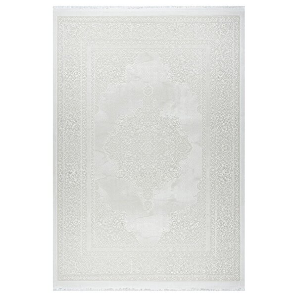 Adalizza Klasik Medalyon İran Tarzı Pamuk Tabanlı Salon - Oturma Odası Krem Renk Halı 200x290 cm