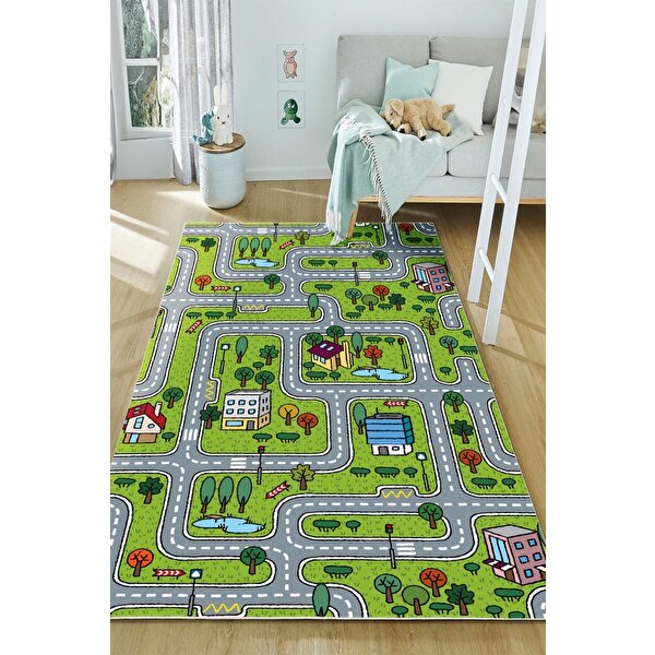 Adalizza Minik Şehir, Büyük Hayaller: Oyun Halısıyla Keşfe Çık Eğitici Kaymaz Taban Oyun Halısı 100x150 cm