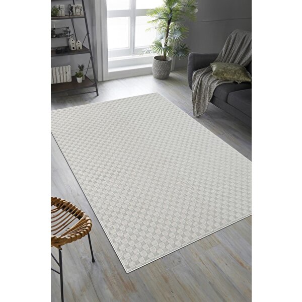 Adalizza Pamuk Tabanlı Modern Tasarımlı Sisal Dama Gri Renk Halı 160x450 cm