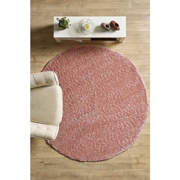 Adalizza Yuvarlak Halı Yumuşak Yüksek Havlı 30 Mm Shaggy Salon Halısı Düz Gül Kurusu Pembe Renkli 200 cm
