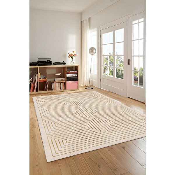 Adalizza Zeminde Bir Labirent Simetrik Çizgili Modern Kaymaz Taban Halı 160x250 cm