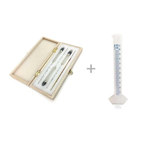 Ahşap Kutulu Alkolmetre Ve Mezür Seti 0-40-70-100