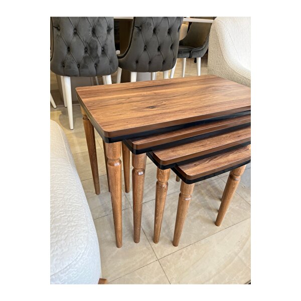 Akset 4lü Lüx Zigon Sehpa Ceviz Siyah