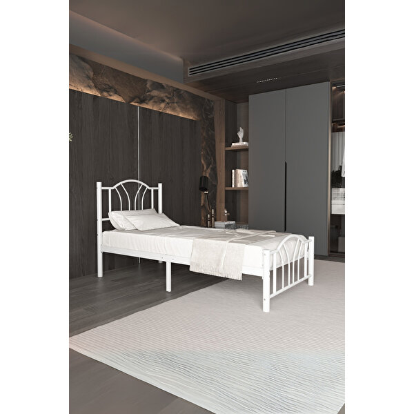 ŞIK VE MİNİMALİST TASARIM: AKSviva Bella Tek Kişilik Karyola, beyaz kaplamalı dayanıklı metal çelik yapısıyla yatak odanıza zamansız, modern bir dokunuş kazandırır.; Yetişkinler, çocuklar veya misafir odaları için ideal bir tercihtir.; İDEAL TEK KİŞİLİK YATAK ÖLÇÜLERİ: 1.2 mm kalınlığında, 51 mm çapında çelik borularla üretilmiş olup, yüksek dayanıklılık sunar.; SAĞLAM VE GÜVENLİ: Yüksek kaliteli çelik iskelet, 2 orta destek ayağı ve kilitleme mekanizmasıyla güçlendirilmiş olup, uzun ömürlü ve güvenli kullanım sağlar.; 350 kg taşıma kapasitesi ile güven verir.; Yükseltilmiş başlık ve ayaklık, yatağın sabit kalmasına yardımcı olur.; SESSİZ VE ZEMİN DOSTU: Özel olarak tasarlanmış çelik çıtalar sessiz bir uyku ortamı sunarken, çelik ızgara yapı yatağın ömrünü uzatır.; Ayak uçlarındaki plastik kaplamalar zeminin çizilmesini önler.; GENİŞ ALT ALAN DEPOLAMA: 27.5 cm yerden yükseklik sayesinde giysi, ayakkabı, valiz ve benzeri eşyalar için pratik ve düzenli bir depolama alanı sunar.; KOLAY KURULUM: Tüm parçalar, gerekli aletler ve anlaşılır talimatlarla birlikte gelir.; Tek kişi tarafından bir saatten kısa sürede kurulabilir.; İÇİNİZ RAHAT OLSUN: 1 yıl sınırlı üretici garantisi ile sunulmaktadır.; Not: Yatak ayrı satılmaktadır.
