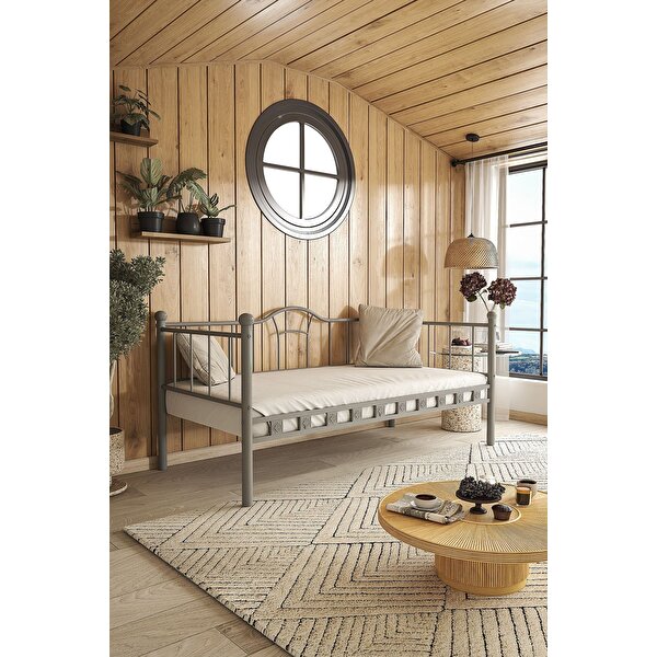 KAMELYA SEDİRGENEL•ISO 9001:2015 kalite yönetim sistemi standartlarında üretilmiştir, TSE belgelidir.; •Kamelya Sedir, CR-ST 12 kalitesinde 1 mm kalınlığında metal profillerden üretilmektedir.; •Ürün, epoksi ve polyester reçineli elektrostatik toz boyalıdır böylece aşınma, solma, paslanma yapmadan kullanılabilir.; •Ürün tamamen demontedir.; •Özel alyan vida geçme sistemi ile herhangi bir ek alet veya bağlantı sistemi kullanılmadan kolaylıkla kurulum yapılabilir.; •Alyan vida sistemi ile karyola dayanıklılığı artar; sallanma, ses, gıcırtı yapma gibi olumsuzluklar yaşanmaz.; •Ürün 2 yıl garantilidir.; •Ürün parçasının kaybolması, deforme olması ya da kullanıcı kaynaklı hata olması durumunda, AKSviva tarafından 10 yıl ekipman desteği sağlanmakta olup ücret karşılığında parça temin edilebilir.; TEKNİK DETAY•Karyola yatak altı platformu olarak 10 adet demir profil lata vardır.; •Yuva derinliği 6 cm’dir.; •Karyola yerden yüksekliği 28 cm’dir.; •Karyola için uygun yatak ölçüsü, karyola ölçüsüdür.; •Ürüne yatak dahil değildir.; •Karyola dış ölçüsü, almış olduğunuz ölçünün 10 cm fazlasıdır.; (Örnek: 90x190 cm alınan ürünün dış ölçüsü 100x200 cm’dir.; )•Taşıma kapasitesi min.; 250 kg’dır.; •Ölçü: 90x190 cm / 90x200 cm / 100x200 cmAVANTAJ•Karyola altı istif alanı olarak kullanılabilir ve kolay temizlenebilir.; •Yüksek taşıma kapasitesi ile çocuk, genç, yetişkin her yaş grubu kullanabilir.; •Sınırlı yaşam alanları olan mekanlar için (küçük odalar, yurt, pansiyon) pratik çözümler sunar.; •Tek kişilik karyola ya da sedir olarak kullanılabilir.; •Kolaylıkla kurulum yapılabilir.;