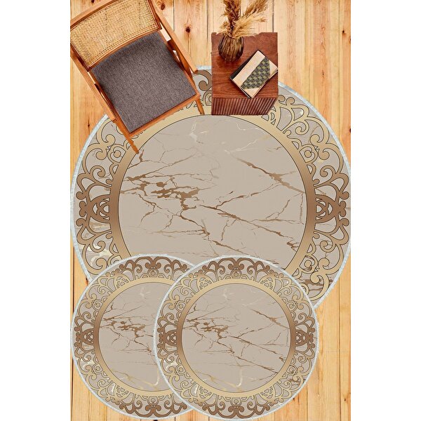 Aldora Gold  kaymaz Taban 3lü Takım Banyo Paspası B1274