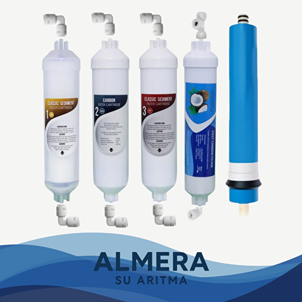 ALMERA SU ARITMA Soket Hediyeli Kapalı Kasa Su Arıtma Cihazlarına Uyumlu 5'li Filtre Seti