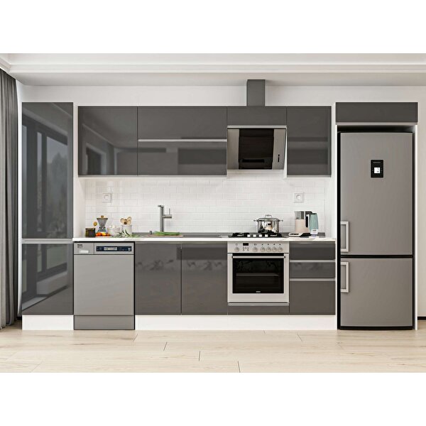 Alvinka 375x222 Cm High Gloss Mdf Mutfak Dolabı Beyaz Antrasıt Mbb-e80b50s45-2 Antrasit