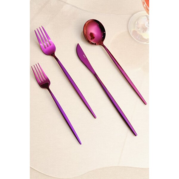 Apricot Faro 24 Parça 6 Kişilik Çatal Kaşık Bıçak Kutulu Mor