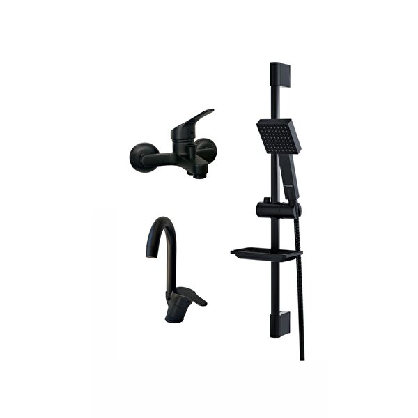 Armour Armatür Siyah Banyo Bataryası Seti Sürgülü Set