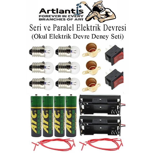 Artlantis Seri Ve Paralel Basit Elektrik Devresi 1 Paket Deney Seti Sarı Mini Duy 3 Adet Mini Ampul 6 Adet Anahtar İş Eğitimi Seti