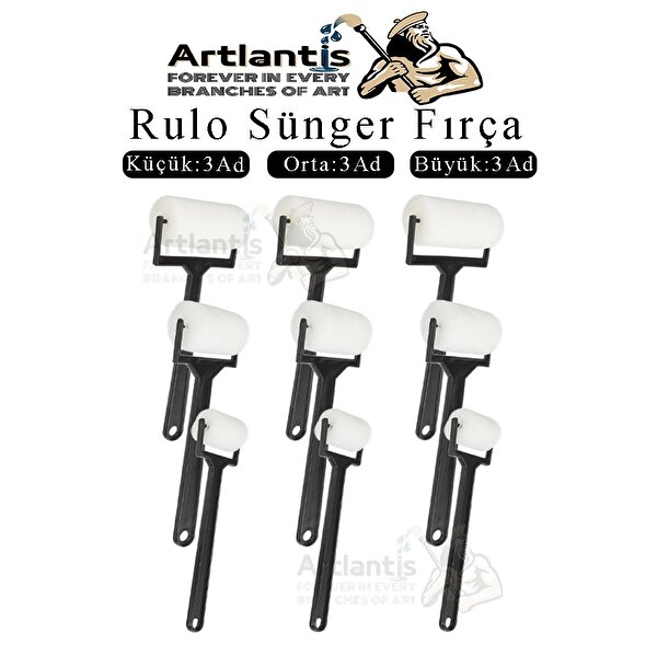 Artlantis Sünger Rulo Fırça 9 Lu 1 Paket Siyah Plastik Saplı Boyama Süngeri Sanatsal Sünger Boya Fırçası Parmak Guaj Akrilik Boya