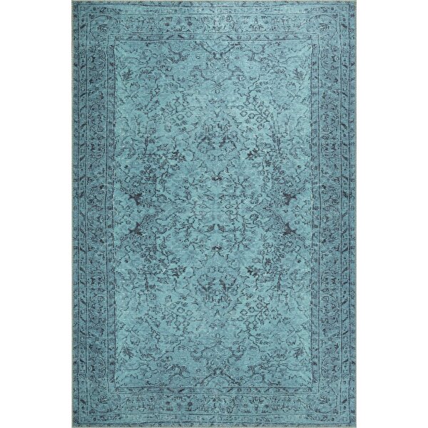 Artloop Folk Eskitme Desenli Dokuma Taban Dekoratif Turkuaz Halı (ba 23) 250x350 cm