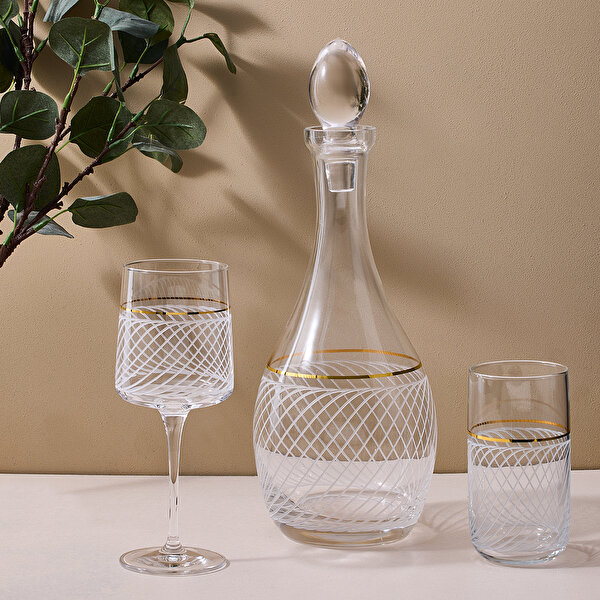 Zarif tasarımı ve şık detaylarıyla sofralarınıza estetik bir dokunuş katacak olan 25 Parça Su Seti, hem günlük kullanım hem de özel davetler için ideal bir tercihtir.Yüksek kaliteli cam malzemeden üretilmiştir.Şeffaf ve parlak yüzey.Kolay temizlenebilir, uzun ömürlü kullanım için elde yıkanması tavsiye edilir.Sofralarınıza zarafet katar.Sağlığa zararlı madde içermez.Set İçeriği12 Adet Kadeh: Şarap, meyve suyu veya özel içecekler için ideal, zarif tasarımlı cam kadehler.12 Adet Su Bardağı: Günlük kullanım için uygun, ergonomik yapısı ve modern çizgileriyle dikkat çeken su bardakları.1 Adet Karaf: Şık ve kullanışlı tasarımıyla su, meyve suyu veya limonata servisi için mükemmeldir.