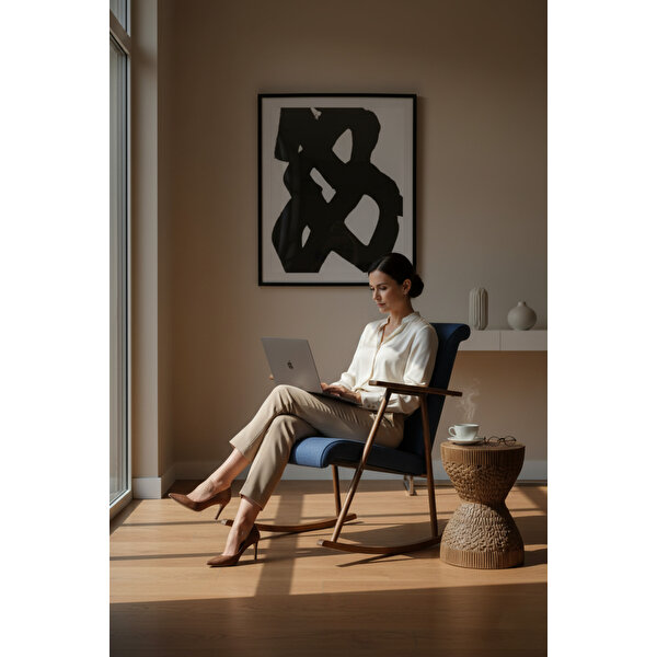 AVYNA Premium Ahşap Sallanan Sandalye | Modern Tv Ve Dinlenme Koltuğu | Ergonomik Sallanan Berjer Mavi