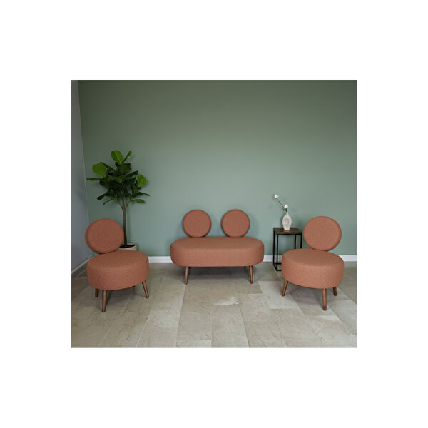 Dünya Model 2+1+1 Koltuk Takımı, yuvarlak sırt formu ve yumuşak buklet dokulu kumaşı ile hem modern yaşam alanları hem de profesyonel iş yerleri için tasarlanmış şık ve konforlu bir settir. Set; 1 adet ikili koltuk + 2 adet tekli berjerden oluşur. Minimal tasarımı sayesinde klinik, danışmanlık ofisi, bekleme alanı, güzellik merkezi ve butik ofislerde ferah ve prestijli bir ortam oluşturur. Buklet kumaş, hem sıcak bir doku sunar hem de yoğun kullanıma karşı dayanıklıdır. 🔹 NERELERDE KULLANILIR? ✔ Klinik & muayenehane ✔ Psikolog & danışmanlık ofisi ✔ Güzellik merkezi ✔ Otel lobisi & bekleme alanı ✔ Ofis & showroom ✔ Ev salonu ve oturma odası Özellikle müşteri karşılanan alanlarda güven ve kalite algısı oluşturur. 🔹 SET İÇERİĞİ • 1 adet İkili Koltuk • 2 adet Tekli Koltuk (Berjer) 🔹 KUMAŞ & YAPI • Buklet kumaş (tok, yumuşak dokulu) • Ahşap ayaklı yapı • Demonte ayak sistemi – kolay kurulum • Uzun ömürlü sünger • Dengeli ve sağlam iskelet