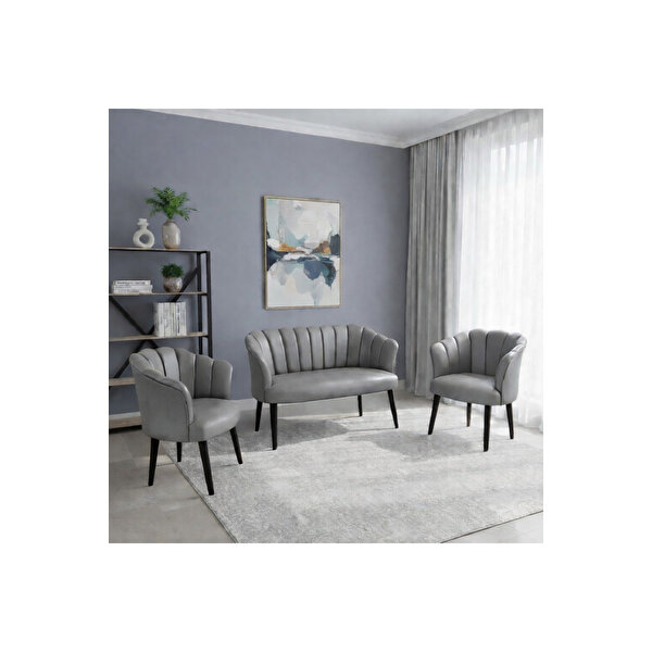 Azra Mobilya Papatya Deri Berjer Takımı | 2 Tekli + 1 İkili Koltuk | Balkon Ofis Kafe İçin | Demonte Ayaklı Gri̇