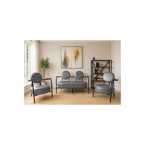 Azra Mobilya Venüs Koltuk Takımı Gri – Dekoratif Modern Deri Koltuk Seti | Ofis Ve Ev Kullanımı