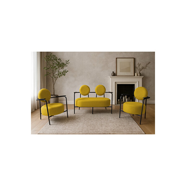 Azra Mobilya Venüs Koltuk Takımı Siyah İskelet – Modern Koltuk Seti | Ofis Ve Ev Kullanımı | Soft Kumaş Sari