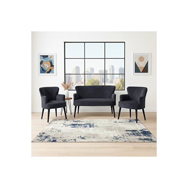 AZRA Roma Çay Seti Koltuk Takımı | Babyface Kumaş | 2 Berjer + 1 İkili Koltuk | Ahşap Ayaklı | Antrasi̇t