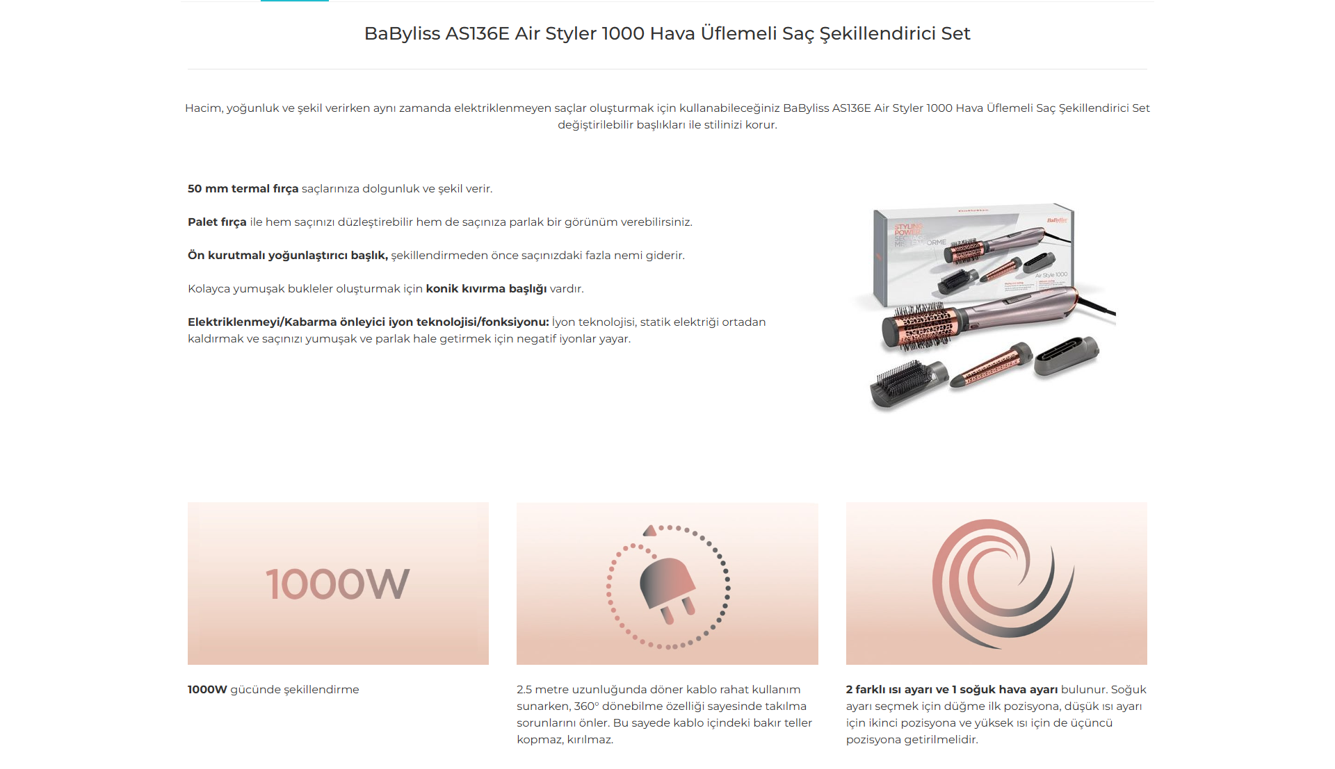 Babyliss As136e Air Styler 1000 Hava Üflemeli Saç Şekillendirici