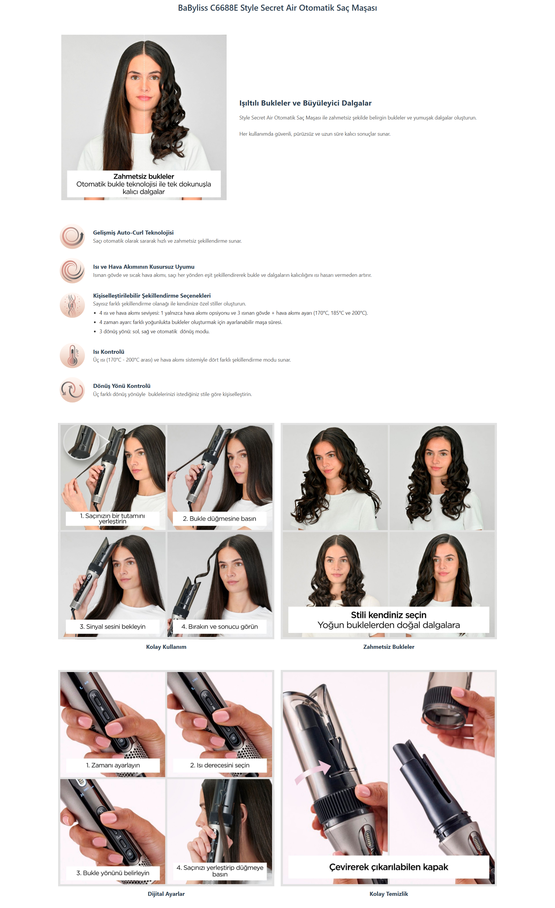 Babyliss BaByliss C6688E Style Secret Air Auto-Curl Teknolojili Sıcak Hava İle Bukle Yapan Otomatik Saç Maşası Metalik