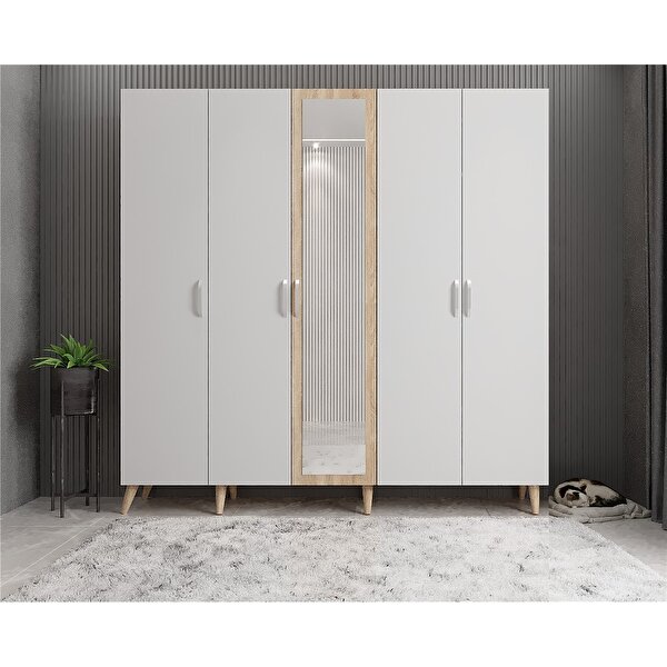 Baramolife Mükemmel 5 Kapaklı Portmanto Meşe&beyaz P.b.m_7_200cm 200 cm