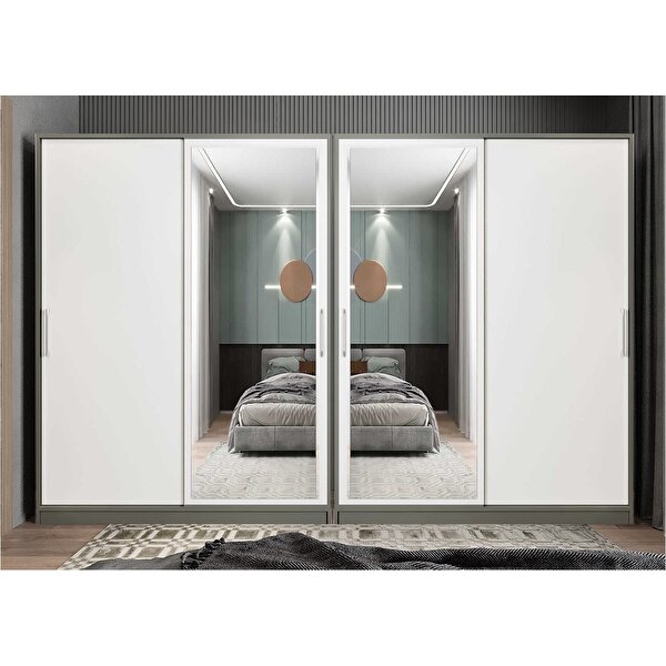 Baramolife Yıldız Sürgülü Gardırop Antrasit&beyaz G.r.y_7_400cm 400 cm