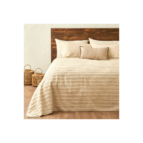 Bella Maison %100 Pamuk Bohemian Çift Kişilik Yatak Örtüsü Seti Krem (240x260 Cm) Krem