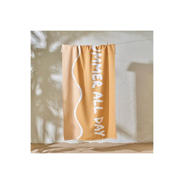 Bella Maison %100 Pamuk Summer All Day Baskılı Plaj Havlusu Hardal (90x150 Cm) Hardal
