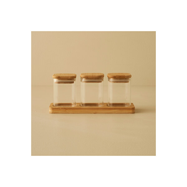 Bella Maison Alice Bambu Kapaklı 3'lü Baharatlık Seti Naturel (21,8x7,8x9,4 Cm) Naturel
