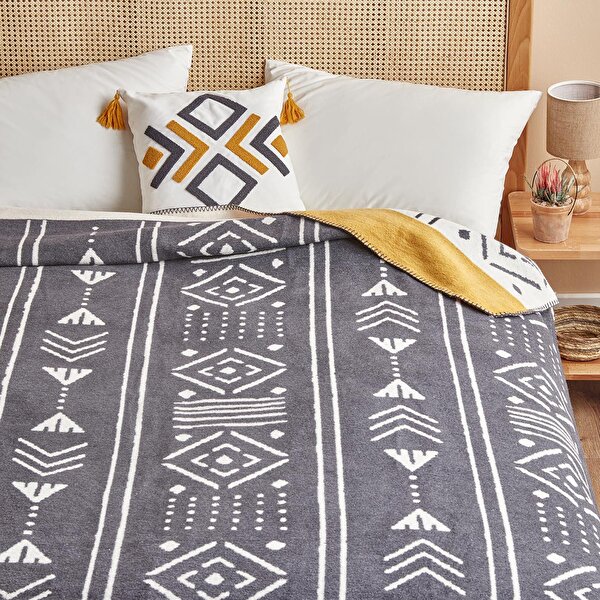 Bella Maison Anchal Pamuklu Çift Kişilik Battaniye Antrasit (180x220 Cm) Antrasit