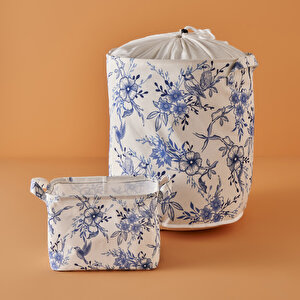 Bella Maison Bleu Blanc Ağzı Büzgülü Çamaşır Sepeti Mavi (36x40 Cm) - Organizer Hediyeli Mavi