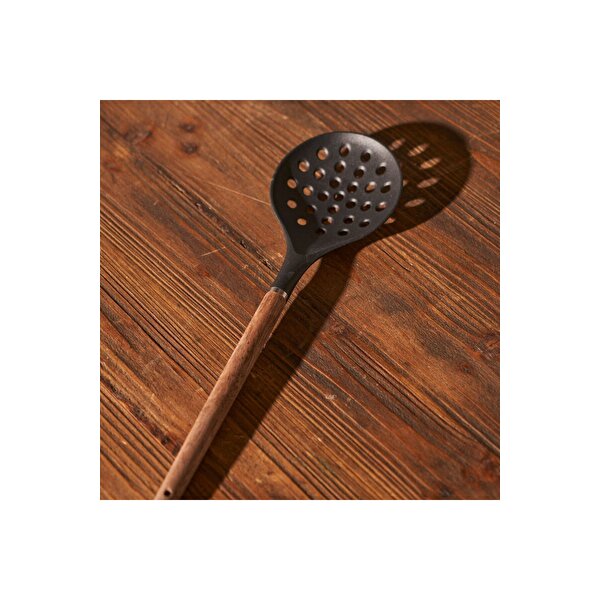 Sapı akasya ağacından üretilen silikon başlıklı kevgirdir. Gıdayla temasa uygundur. Uzun süreli kullanım için elde yıkanması önerilir.