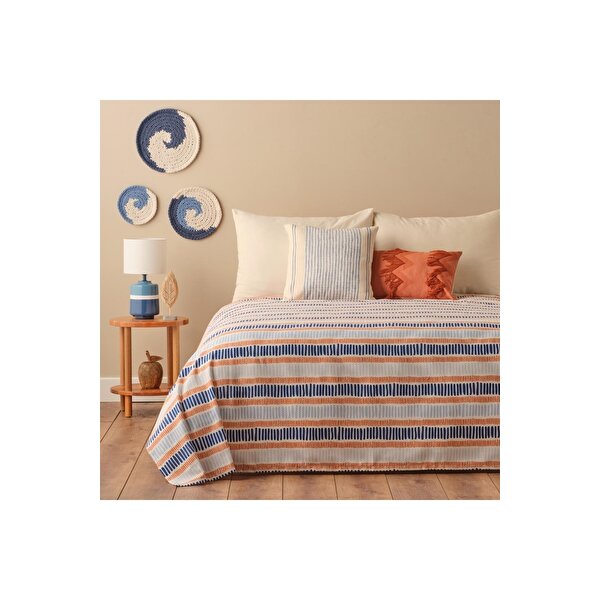 Bella Maison Marin Cooper Pamuklu Tek Kişilik Baskılı Pike Mavi (150x220 Cm) Mavi