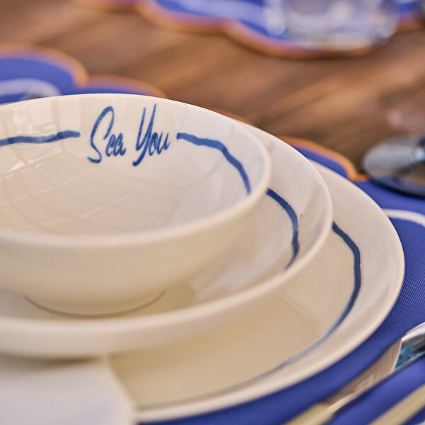 Marine koleksiyonuna ait 24 parça porselen yemek takımı. Bulaşık makinesinde yıkanabilir, mikrodalgaya ve fırına girmeye uygundur. Marine Koleksiyonu, denizin dinginliğini ve sahil kasabalarının sade şıklığını yaşam alanlarınıza taşıyor. Mavi-beyaz renk paleti, özgün el tasarımı desenler ve doğal kumaş dokuları ile her parça, yazın yalın ve ferah zarafetini yaşam alanlarınıza davet ediyor. Bu koleksiyon sayesinde deniz kenarında geçirilen sakin bir günü sofradan yatak odasına, dekorasyondan banyoya her alanda hissedeceksiniz.