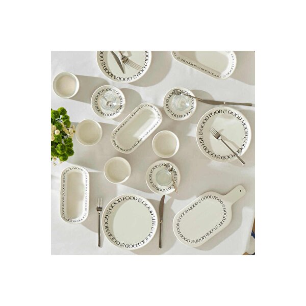 Bella Maison Motto Seramik 26 Parça 6 Kişilik Kahvaltı Takımı Beyaz Beyaz
