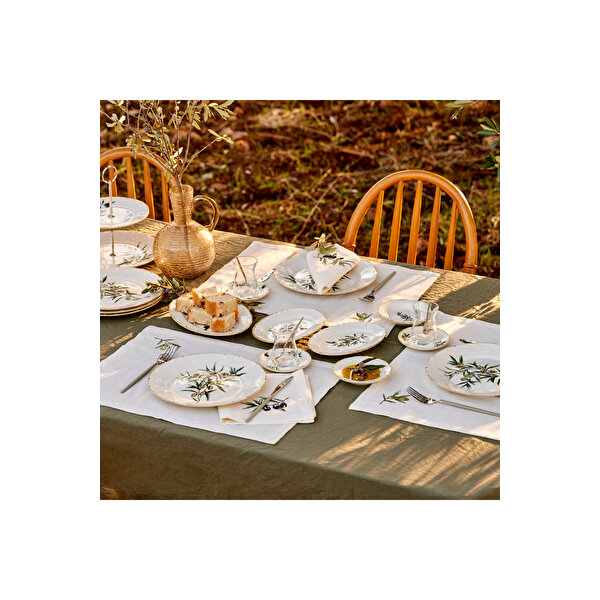 Olive koleksiyonuna ait 26 parça porselen kahvaltı takımı. Bulaşık makinesinde yıkanabilir, mikrodalgaya ve fırına girmeye uygundur. Olive Koleksiyonu, binlerce yıllık zeytin ağaçlarının gölgesinden ilham alarak doğallığı, sadeliği ve köklü bir kültürü sofralarınıza taşıyor. Sofradan dekorasyona uzanan her parça, toprağın bereketini ve doğayla kurulan kadim bağı hissettiriyor. Zeytin dalının huzur veren zarafetiyle şekillenen bu koleksiyon, yaşam alanlarınıza anlam ve dinginlik katıyor.