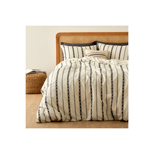 Bella Maison Olwen Pamuklu Çift Kişilik Nevresim Takımı Beyaz-siyah (200x220 Cm) Beyaz- Siyah
