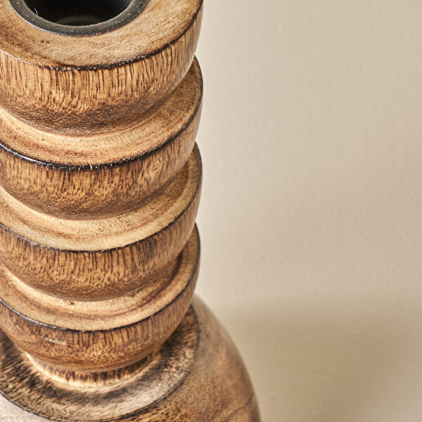 Ürün mango ahşap ağacından üretilmiştir.Ürün boyu 15,5 cm'dir.Şamdan mum için kullanıma uygundur.Evinizin dilediğiniz köşesinde sergileyebileceğiniz şık bir dekoratif üründür. Nemli bezle temizlenmesi önerilir.