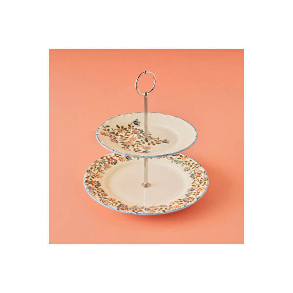 Bella Maison Vintage 2 Katlı Porselen Kurabiyelik Mavi (25x25 Cm) Mavi