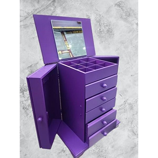 Bengi Ticaret Hobi Erdl Model90524 7çekmece Aynalı Makyaj Şifonyer Kutu Mor Renk El Yapımı