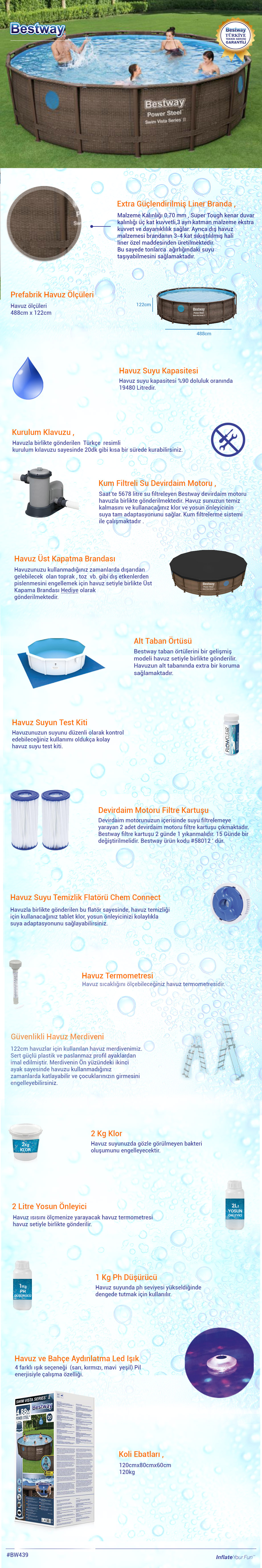Bestway Prefabrik Havuz Seti 488 X 122 Cm Bw 439