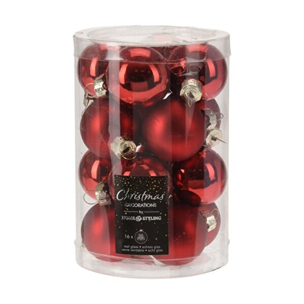 Yılbaşı Topu Cam Set 16 adet Boyutlar: Çap 3,5cm Malzeme: Cam Renk: Parlak-Mat Kırmızı