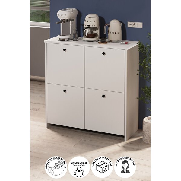 Bofigo 4 Kapaklı Dolap 4 Bölmeli Çok Amaçlı Dolap Mutfak Dolabı Banyo Dolabı Kiler Tetra Beyaz