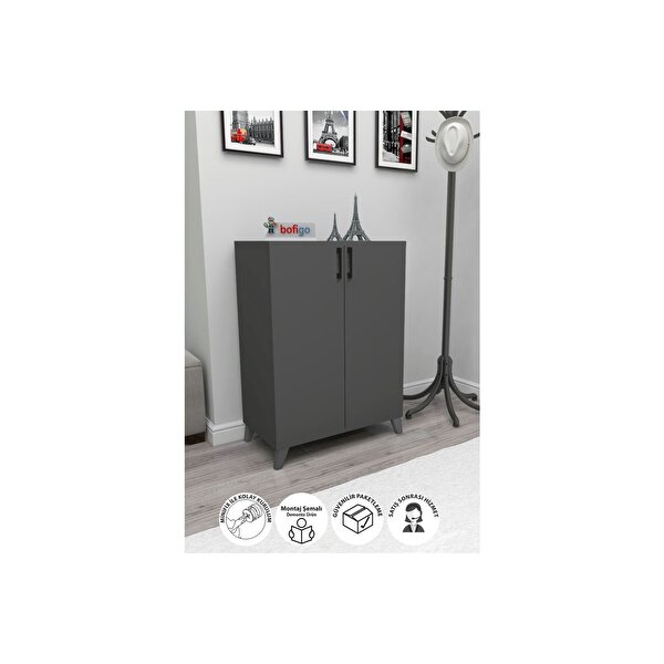 Bofigo 4 Raflı 2 Kapaklı Ayakkabılık Çok Amaçlı Dolap Ayakkabı Dolabı Ceren Antrasit